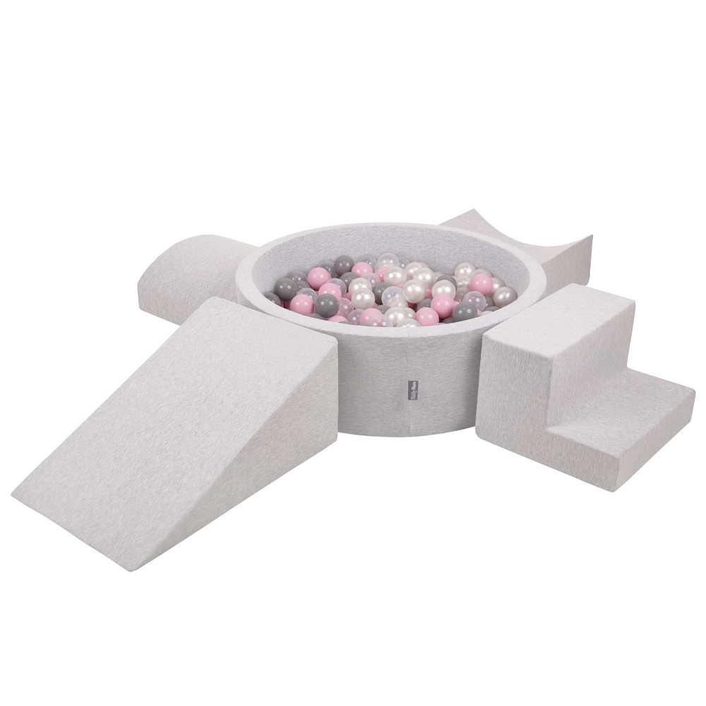 KiddyMoon Piankowy plac zabaw PPZP-OK30D-115 z piłeczkami Zabawka plac zabaw, jasnoszary: perła-szary-transparent-pudrowy róż