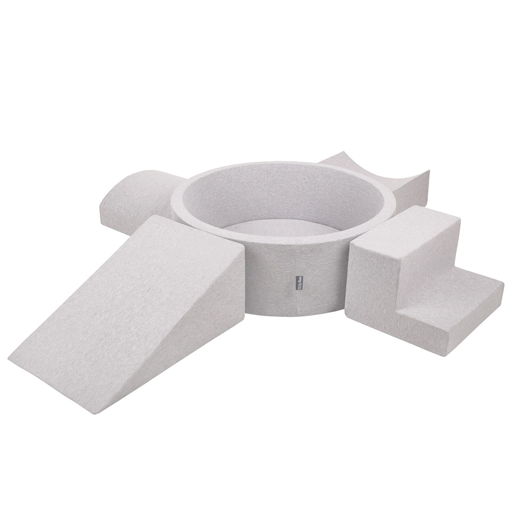 KiddyMoon Piankowy plac zabaw PPZP-OK30D-115 z piłeczkami Zabawka plac zabaw, jasnoszary: żółty-zielony-niebieski-czerwony-pomarańcz
