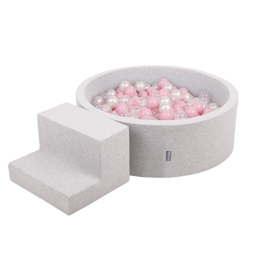 KiddyMoon Piankowy plac zabaw PPZP-OK30D-122 z piłeczkami Zabawka plac zabaw, jasnoszary: pudrowy róż-perła-transparent