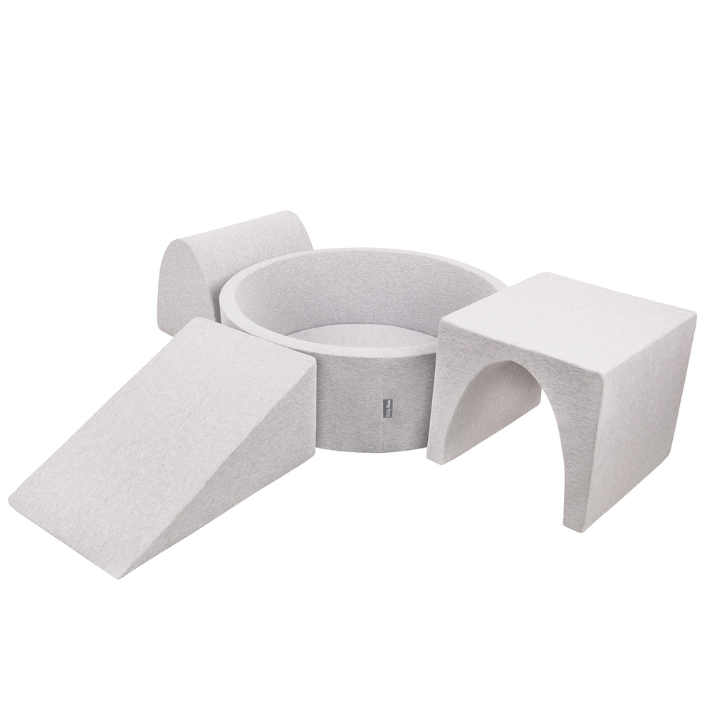 KiddyMoon Piankowy plac zabaw PPZP-OK30D-124 z piłeczkami Zabawka plac zabaw, jasnoszary: biały-szary-pudrowy róż