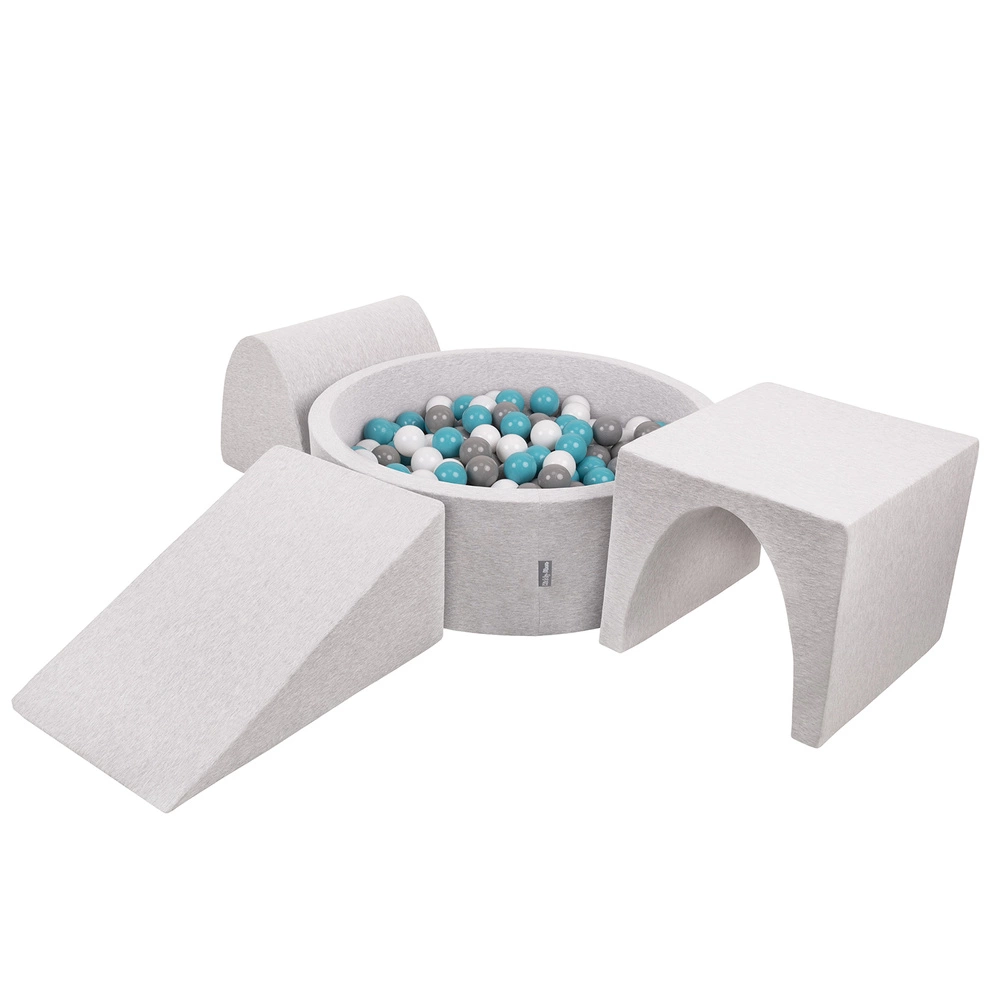 KiddyMoon Piankowy plac zabaw PPZP-OK30D-124 z piłeczkami Zabawka plac zabaw, jasnoszary: szary-biały-turkus