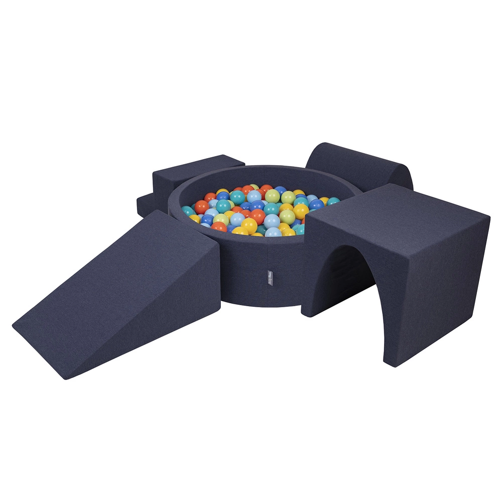 KiddyMoon Piankowy plac zabaw PPZP-OK30D-125 z piłeczkami Zabawka plac zabaw, granatowy: jasny zielony-pomarańcz-turkus-niebieski-babyblue-żółty