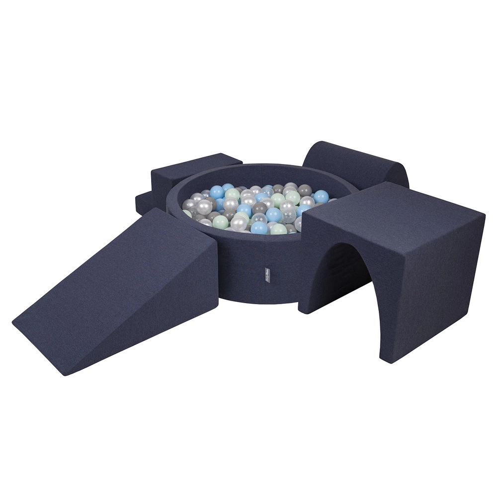 KiddyMoon Piankowy plac zabaw PPZP-OK30D-125 z piłeczkami Zabawka plac zabaw, granatowy: perła-szary-transparent-babyblue-mięta