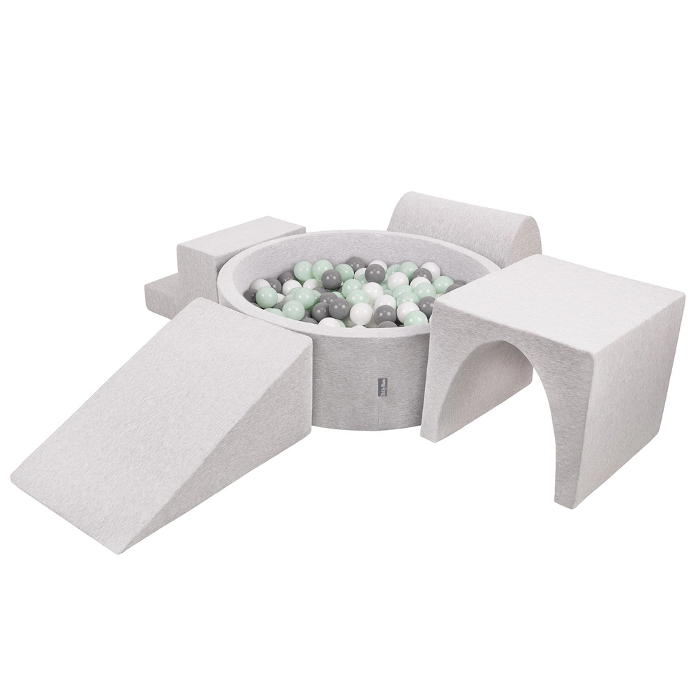 KiddyMoon Piankowy plac zabaw PPZP-OK30D-125 z piłeczkami Zabawka plac zabaw, jasnoszary: biały-szary-mięta