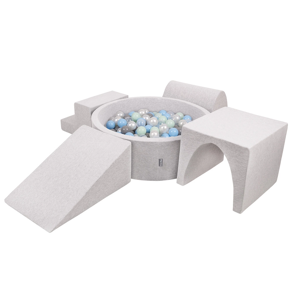 KiddyMoon Piankowy plac zabaw PPZP-OK30D-125 z piłeczkami Zabawka plac zabaw, jasnoszary: perła-szary-transparent-babyblue-mięta
