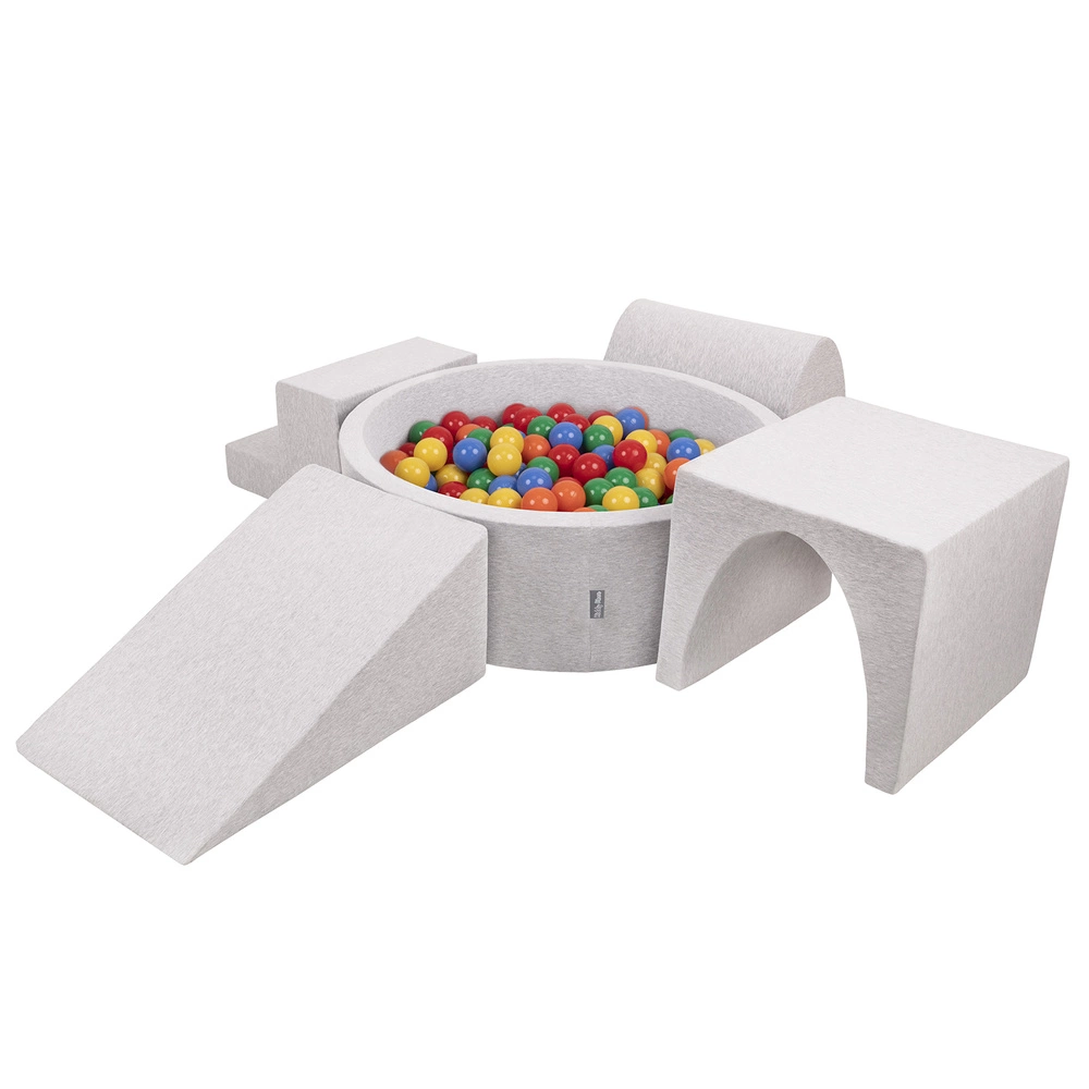 KiddyMoon Piankowy plac zabaw PPZP-OK30D-125 z piłeczkami Zabawka plac zabaw, jasnoszary: żółty-zielony-niebieski-czerwony-pomarańcz
