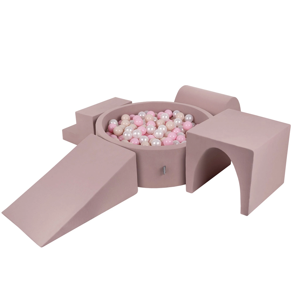 KiddyMoon Piankowy plac zabaw PPZP-OK30D-125 z piłeczkami Zabawka plac zabaw, wrzosowy: pastelowy beż-pudrowy róż-perła