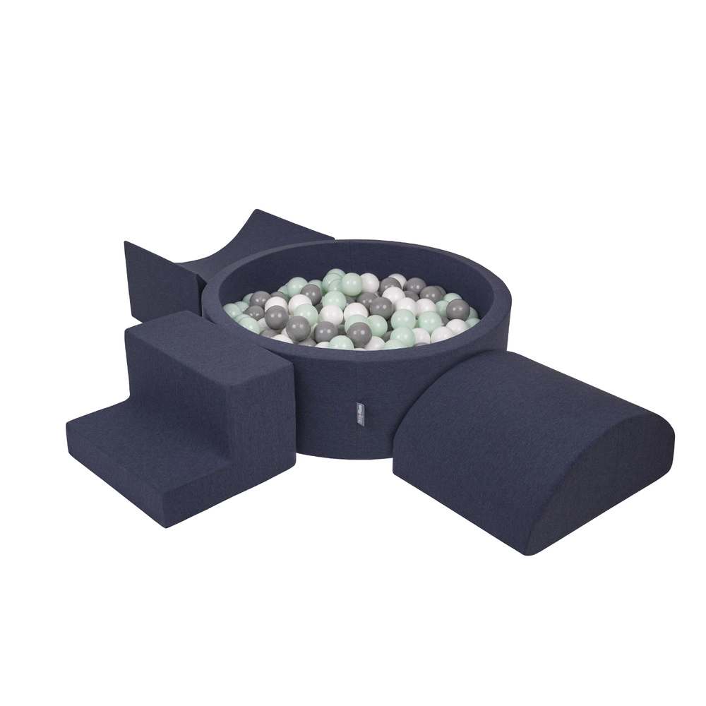 KiddyMoon Piankowy plac zabaw PPZP-OK30D-134 z piłeczkami Zabawka plac zabaw, granatowy: biały-szary-mięta