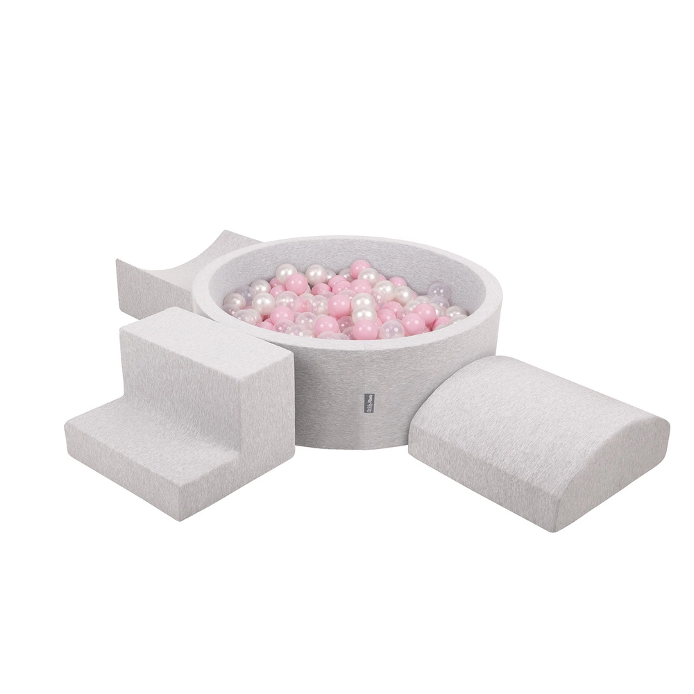 KiddyMoon Piankowy plac zabaw PPZP-OK30D-134 z piłeczkami Zabawka plac zabaw, jasnoszary: pudrowy róż-perła-transparent