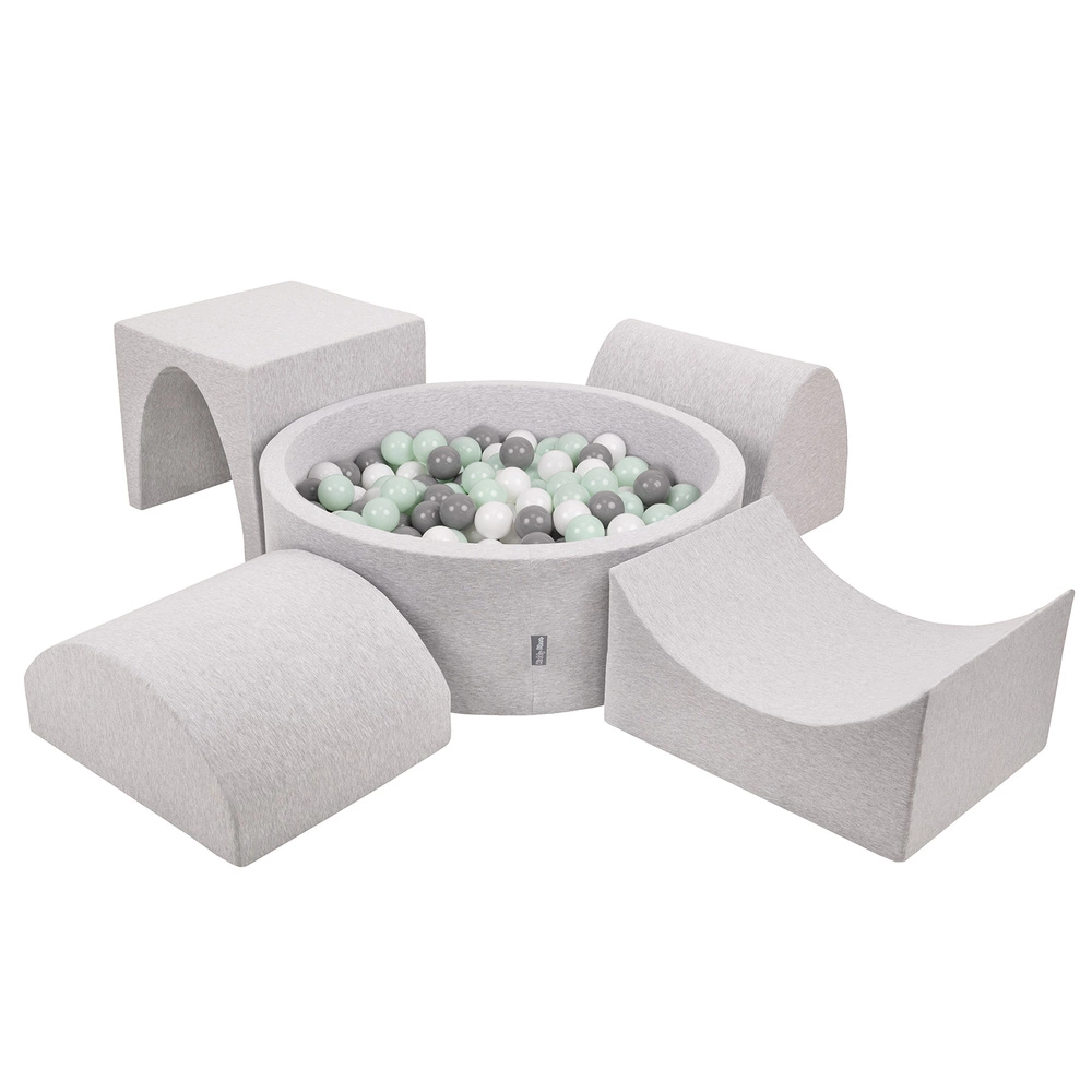 KiddyMoon Piankowy plac zabaw PPZP-OK30D-135 z piłeczkami Zabawka plac zabaw, jasnoszary: biały-szary-mięta
