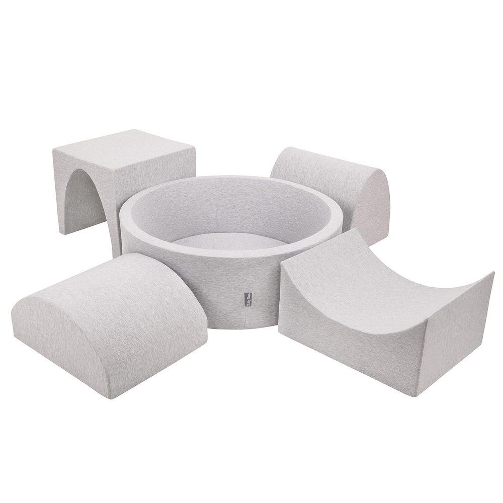 KiddyMoon Piankowy plac zabaw PPZP-OK30D-135 z piłeczkami Zabawka plac zabaw, jasnoszary: perła-szary-transparent-babyblue-mięta