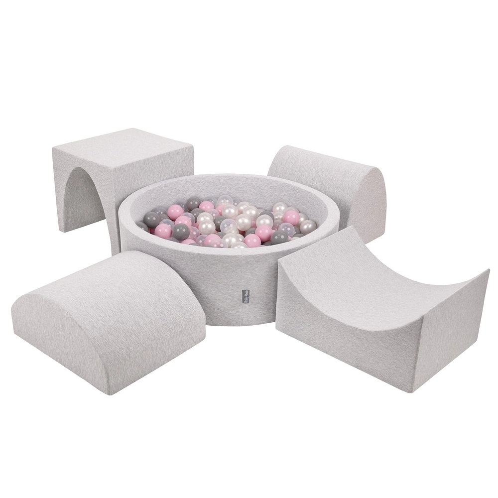 KiddyMoon Piankowy plac zabaw PPZP-OK30D-135 z piłeczkami Zabawka plac zabaw, jasnoszary: perła-szary-transparent-pudrowy róż