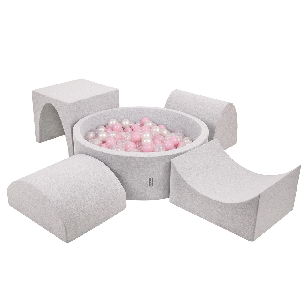KiddyMoon Piankowy plac zabaw PPZP-OK30D-135 z piłeczkami Zabawka plac zabaw, jasnoszary: pudrowy róż-perła-transparent
