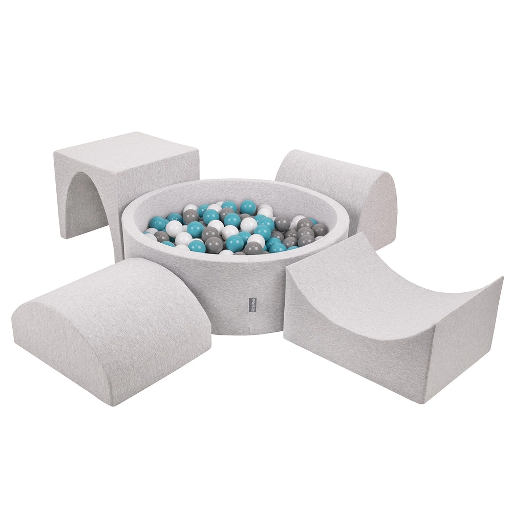 KiddyMoon Piankowy plac zabaw PPZP-OK30D-135 z piłeczkami Zabawka plac zabaw, jasnoszary: szary-biały-turkus