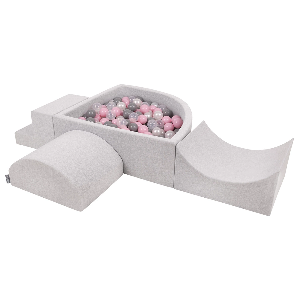 KiddyMoon Piankowy plac zabaw PPZP-TR30D-134 z piłeczkami Zabawka plac zabaw, jasnoszary: perła-szary-transparent-pudrowy róż