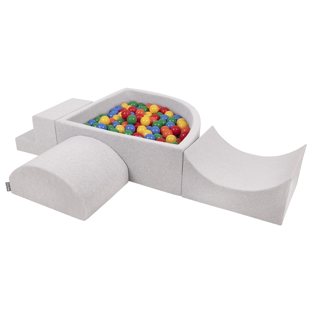 KiddyMoon Piankowy plac zabaw PPZP-TR30D-134 z piłeczkami Zabawka plac zabaw, jasnoszary: żółty-zielony-niebieski-czerwony-pomarańcz