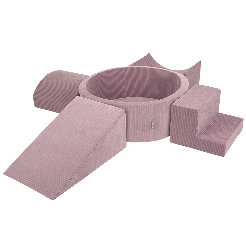 Piankowy zestaw z piłeczkami dla dzieci wykonany z przyjemnej w dotyku prążkowanej dzianiny.