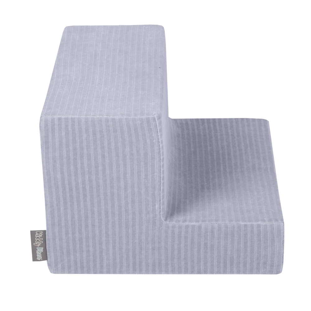 Piankowy schodek dla dzieci wykonany z przyjemnej w dotyku prążkowanej dzianiny.