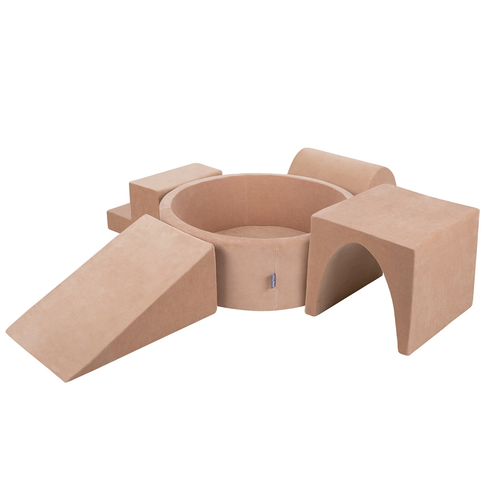 KiddyMoon Piankowy plac zabaw VELVET PPZP-OK30V-125 z piłeczkami Zabawka plac zabaw, róż pustyni: pastelowy beż-pastelowy żółty-biały-mięta-pudrowy róż
