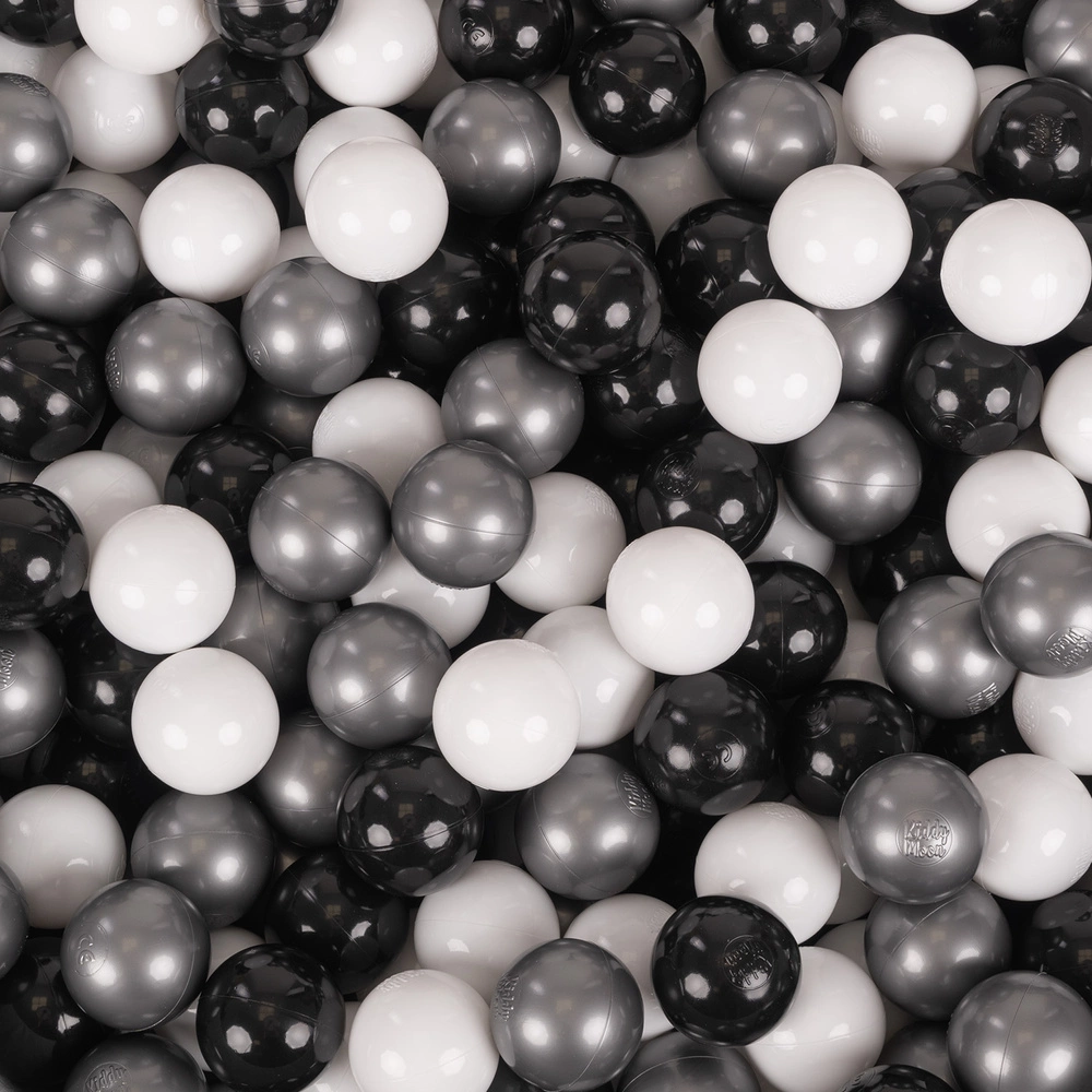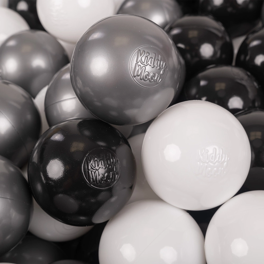 KiddyMoon Plastikowe piłeczki 7cm Zabawka zestaw kulek, biały-czarny-srebrny