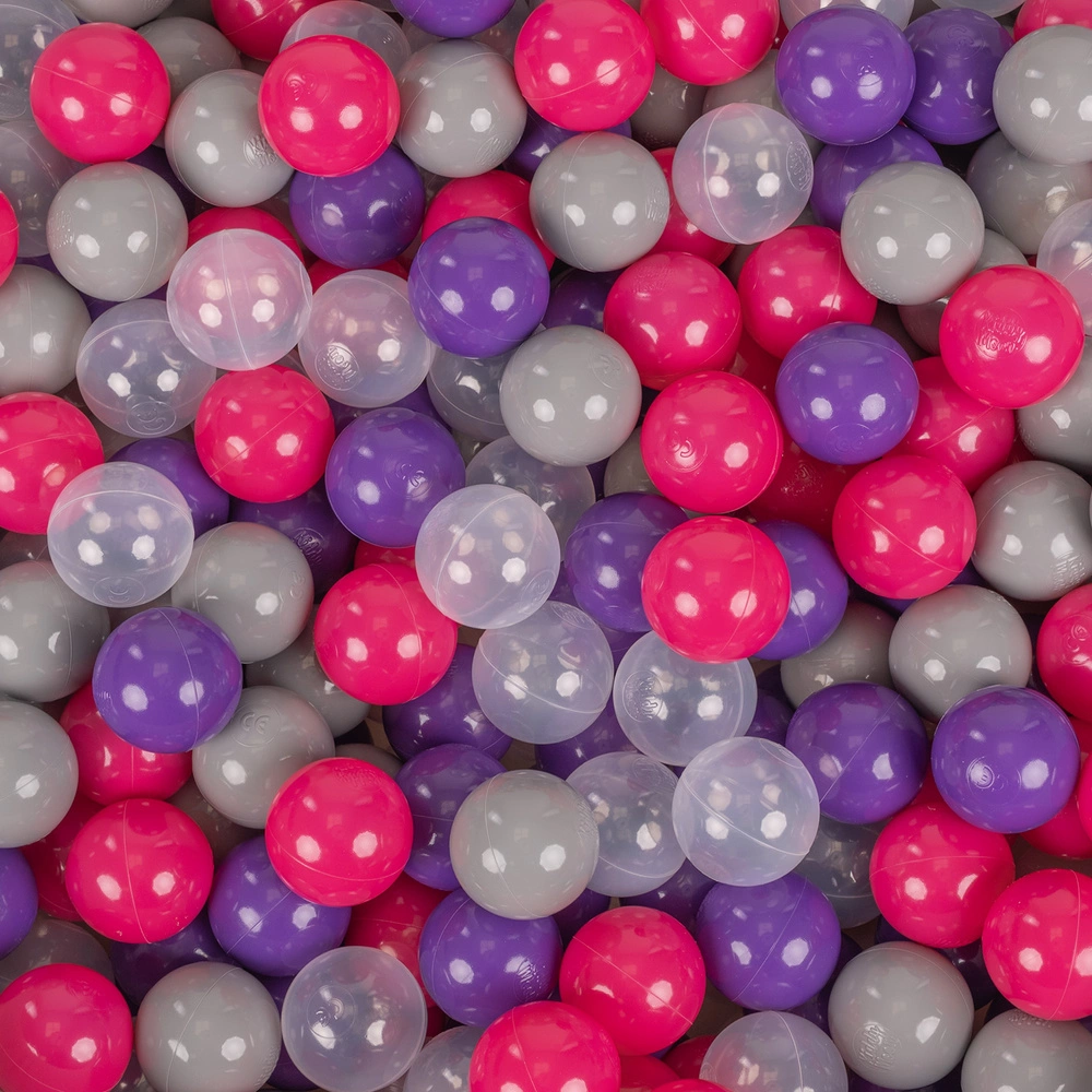KiddyMoon Plastikowe piłeczki 7cm Zabawka zestaw kulek, ciemny róż-fiolet-transparent-szary