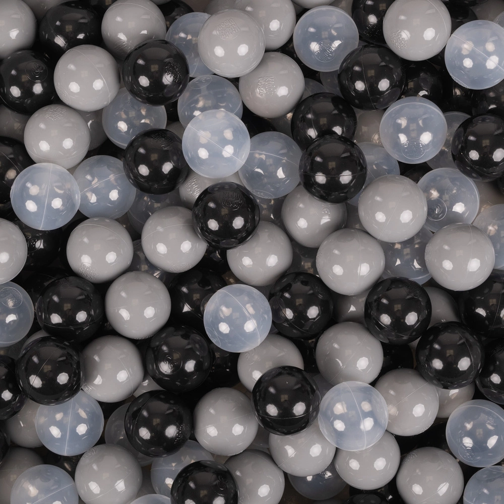 KiddyMoon Plastikowe piłeczki 7cm Zabawka zestaw kulek, czarny-szary-transparent