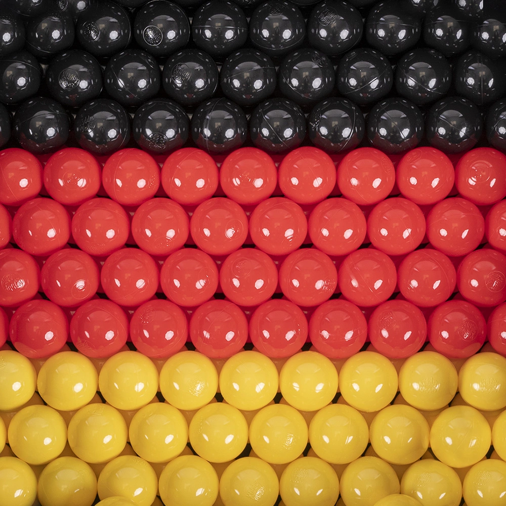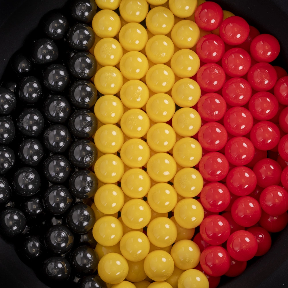 KiddyMoon Plastikowe piłeczki 7cm Zabawka zestaw kulek, czarny-żółty-czerwony