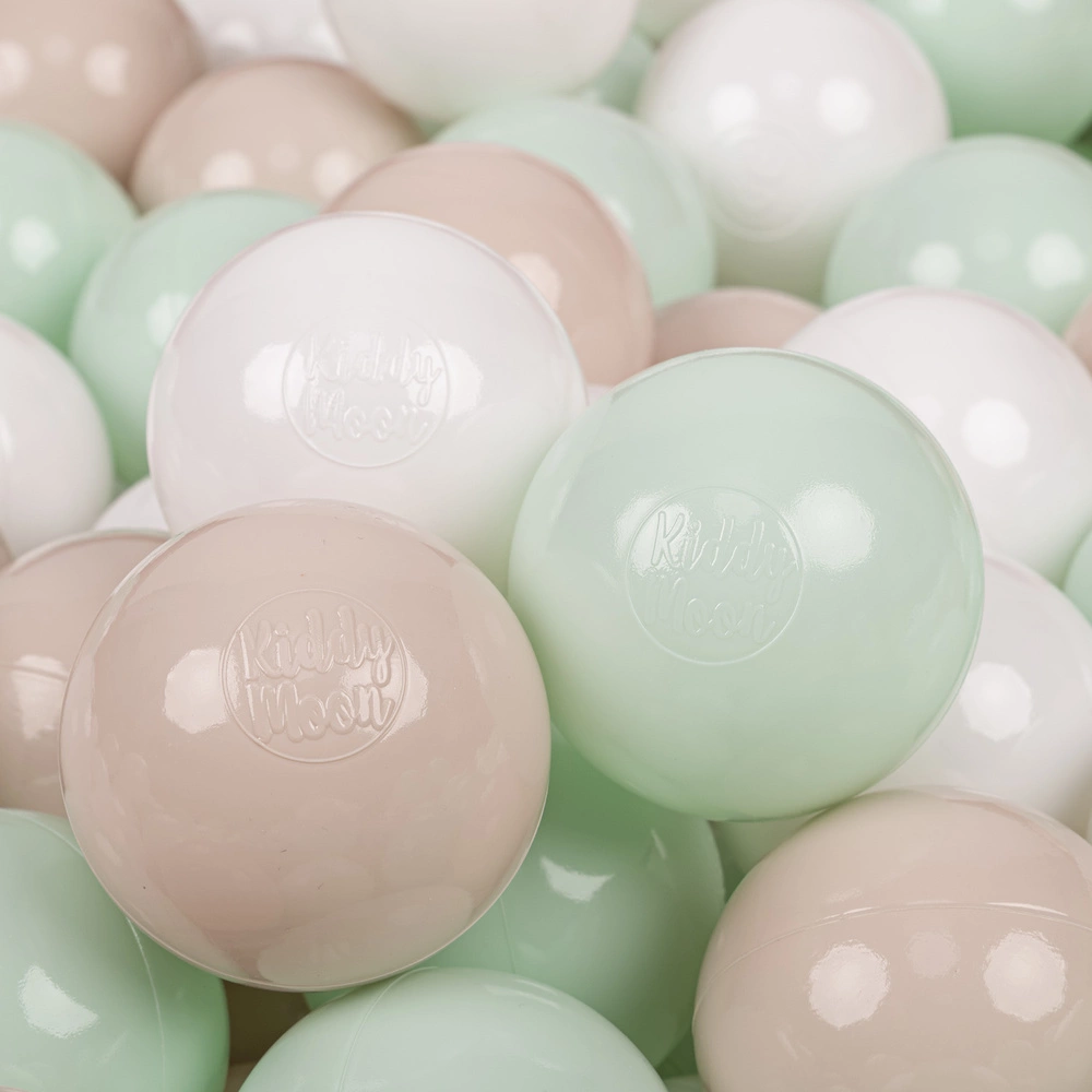 KiddyMoon Plastikowe piłeczki 7cm Zabawka zestaw kulek, pastelowy beż-biały-mięta