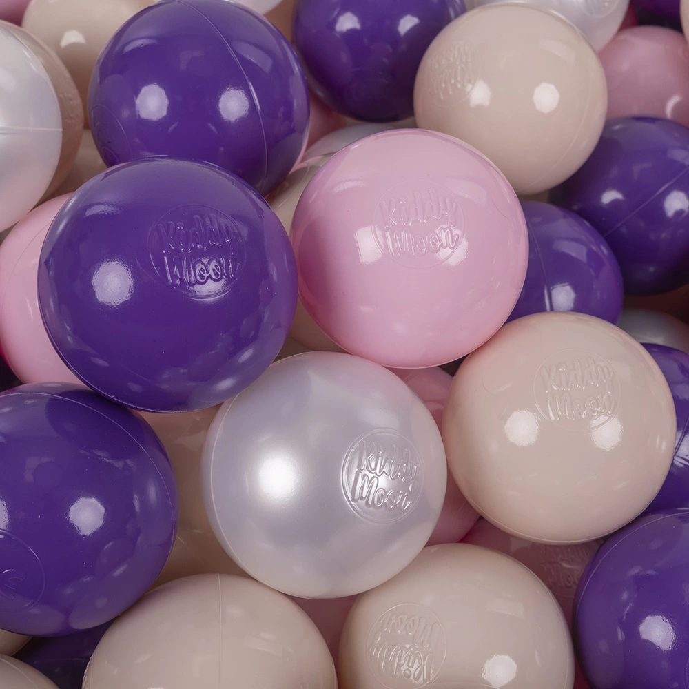 KiddyMoon Plastikowe piłeczki 7cm Zabawka zestaw kulek, pastelowy beż-pudrowy róż-perła-fiolet