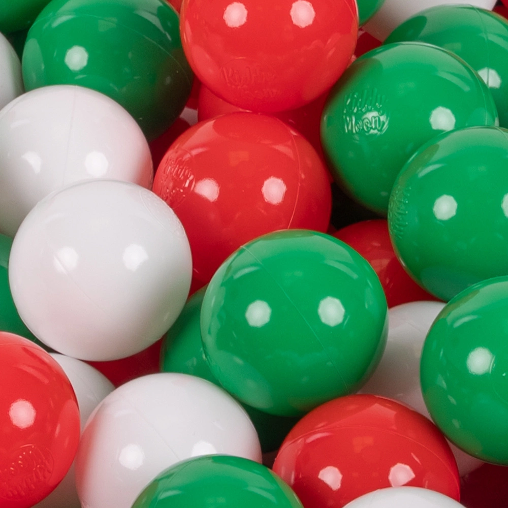 KiddyMoon Plastikowe piłeczki 7cm Zabawka zestaw kulek, zielony-biały-czerwony