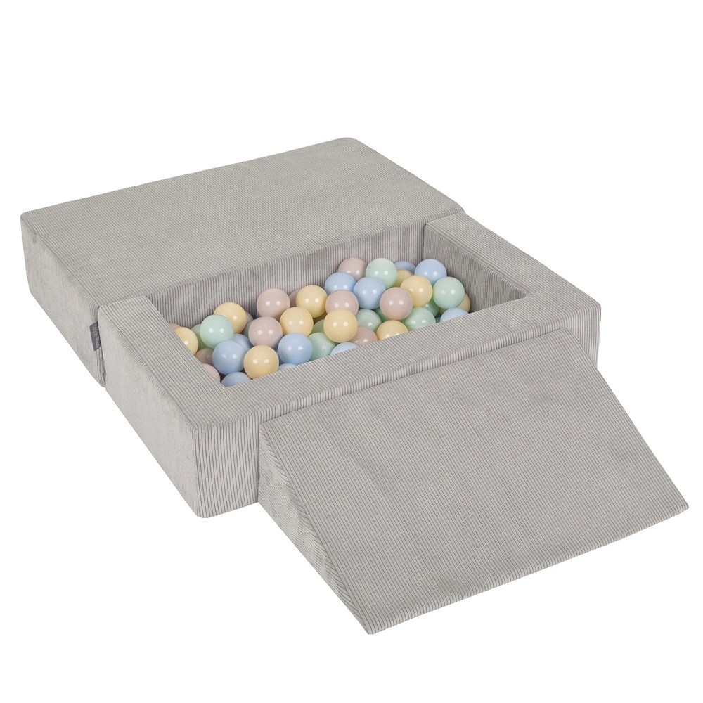Dodatkowy klin wykonany z miękkiej pianki to wszechstronny element, który można wykorzystać na wiele sposobów: jako podparcie podczas siedzenia, poduszkę do leżenia lub element do kreatywnej zabawy. Klin można łatwo przemieszczać i dopasowywać w zależności od potrzeb, co czyni sofę jeszcze bardziej uniwersalną. W zestawie z kolorowymi piłeczkami łatwo przekształcisz sofę z klinem w domowy plac zabaw.