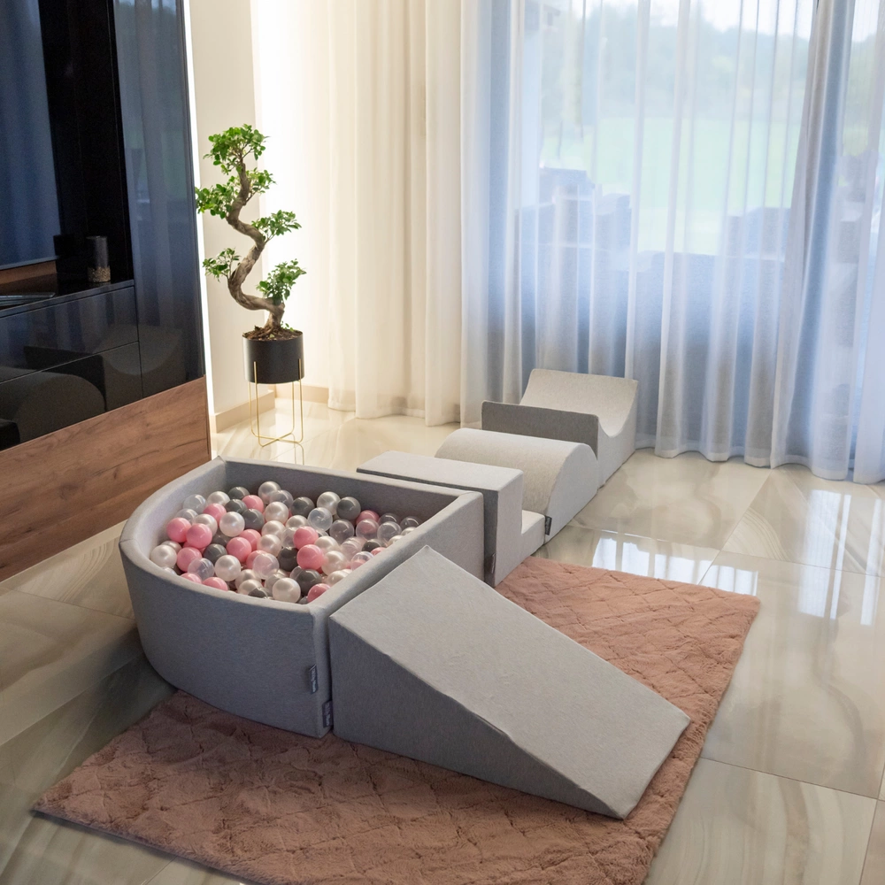 KiddyMoon Suchy basen kwadratowy z piłeczkami 7cm Zabawka basen piankowy, jasnoszary: biały-szary-pudrowy róż