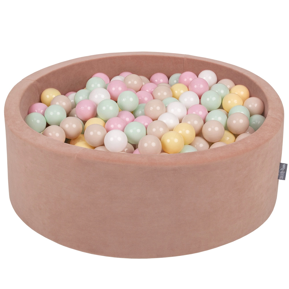 KiddyMoon Suchy basen okrągły VELVET z piłeczkami 7cm Zabawka basen piankowy, róż pustyni: pastelowy beż-pastelowy żółty-biały-mięta-pudrowy róż