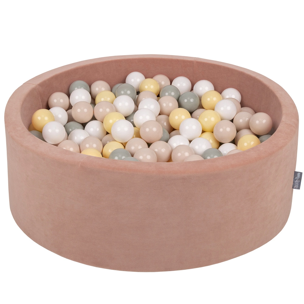 KiddyMoon Suchy basen okrągły VELVET z piłeczkami 7cm Zabawka basen piankowy, róż pustyni: pastelowy beż-zielonoszary-pastelowy żółty-biały
