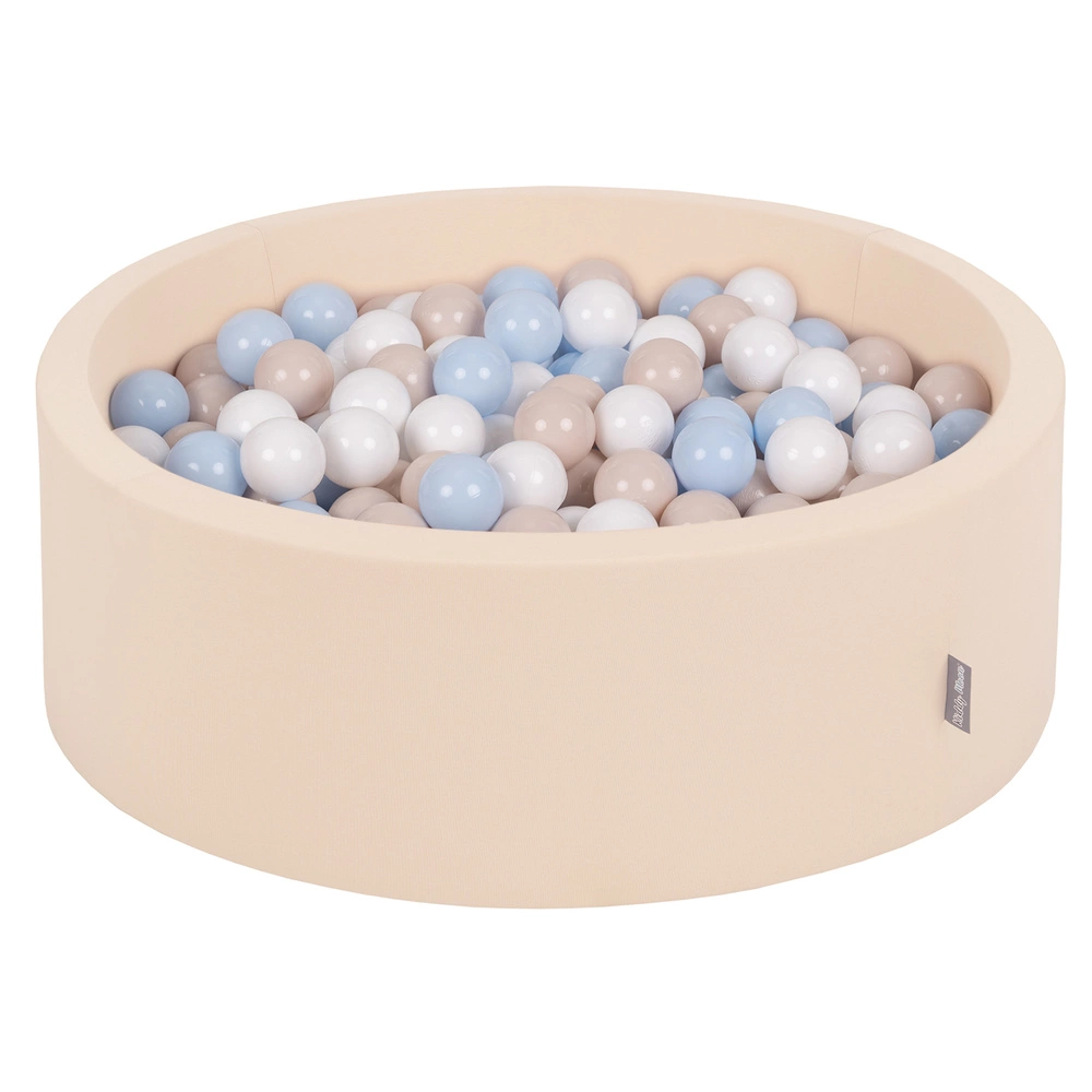 KiddyMoon Suchy basen okrągły z piłeczkami 7cm Zabawka basen piankowy, beżowy: pastelowy beż-pastelowy niebieski-biały