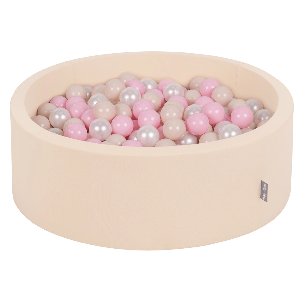 KiddyMoon Suchy basen okrągły z piłeczkami 7cm Zabawka basen piankowy, beżowy: pastelowy beż-pudrowy róż-perła