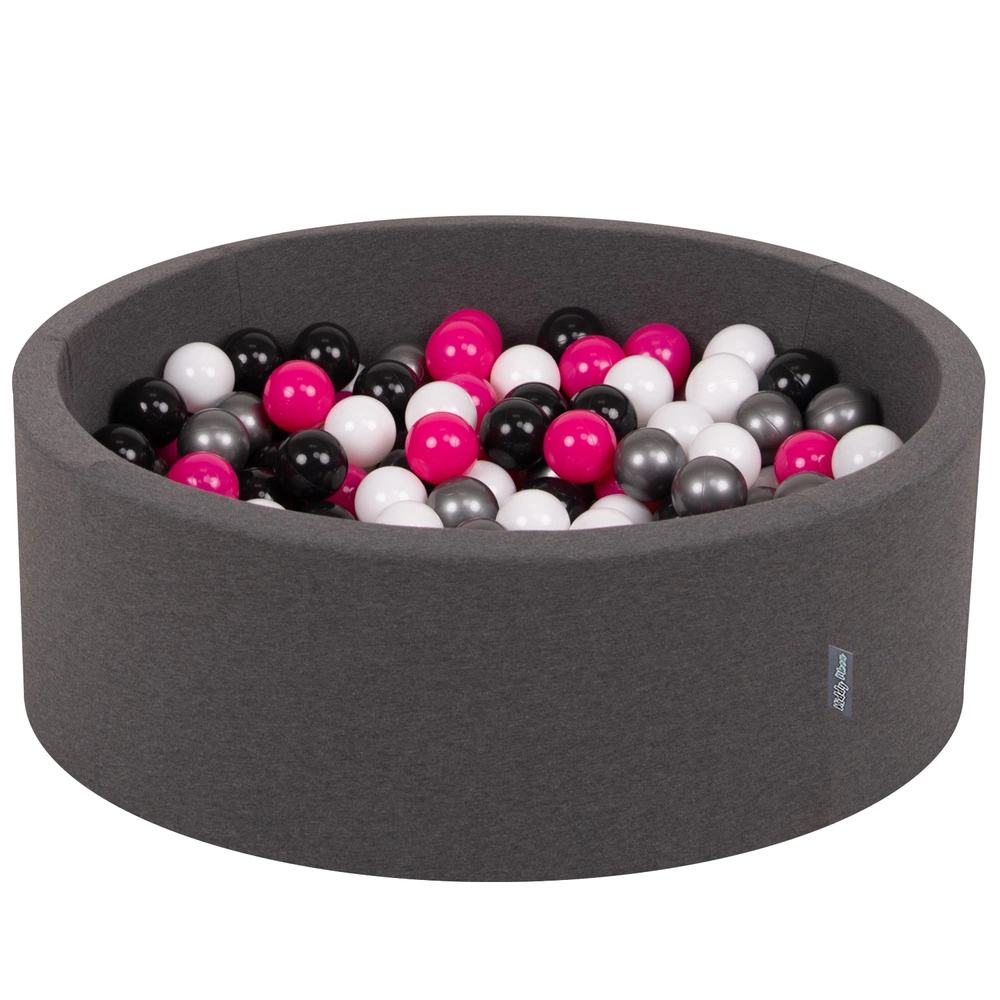 KiddyMoon Suchy basen okrągły z piłeczkami 7cm Zabawka basen piankowy, ciemnoszary: biały-czarny-srebrny-ciemny róż