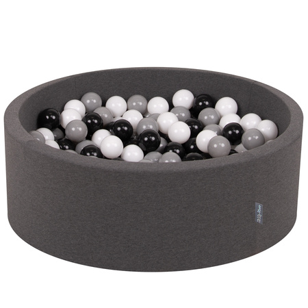 KiddyMoon Suchy basen okrągły z piłeczkami 7cm Zabawka basen piankowy, ciemnoszary: biały-czarny-szary