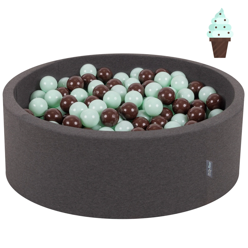 KiddyMoon Suchy basen okrągły z piłeczkami 7cm Zabawka basen piankowy, ciemnoszary: mięta-brązowy