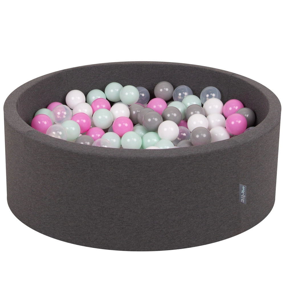 KiddyMoon Suchy basen okrągły z piłeczkami 7cm Zabawka basen piankowy, ciemnoszary: transparent-szary-biały-róż-mięta