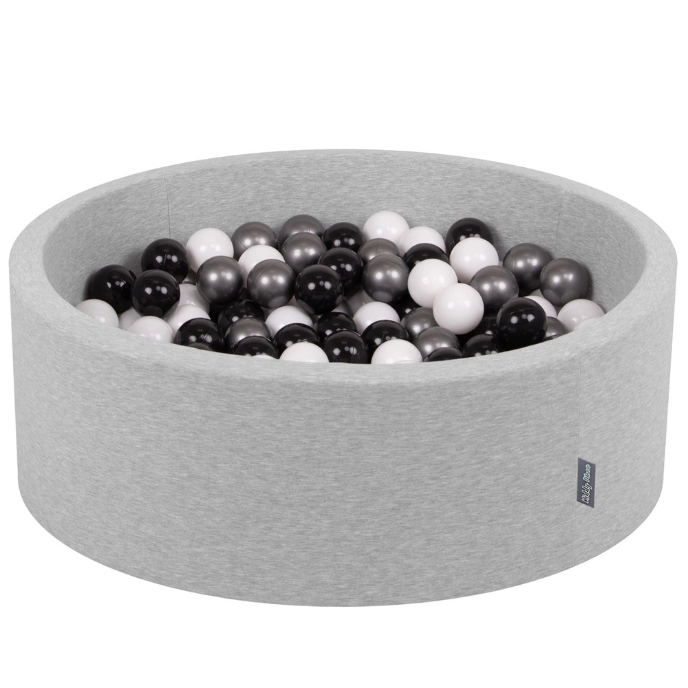 KiddyMoon Suchy basen okrągły z piłeczkami 7cm Zabawka basen piankowy, jasnoszary: biały-czarny-srebrny