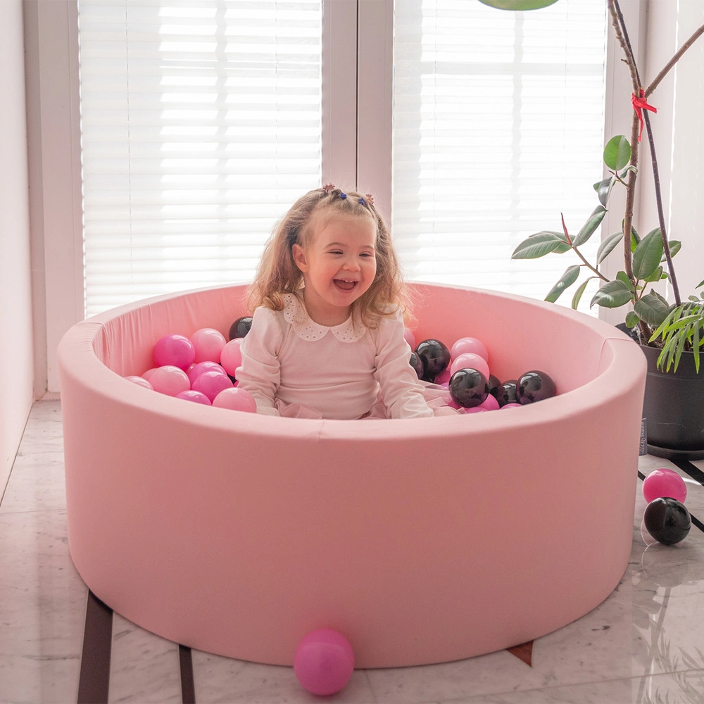 KiddyMoon Suchy basen okrągły z piłeczkami 7cm Zabawka basen piankowy, różowy: róż-pudrowy róż-czarny