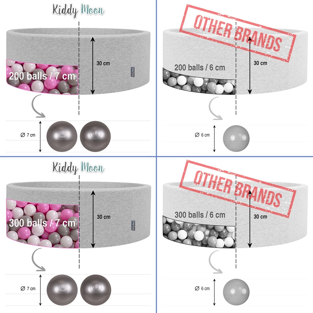 KiddyMoon Suchy basen okrągły z piłeczkami 7cm Zabawka basen piankowy, różowy: szary-biały-róż