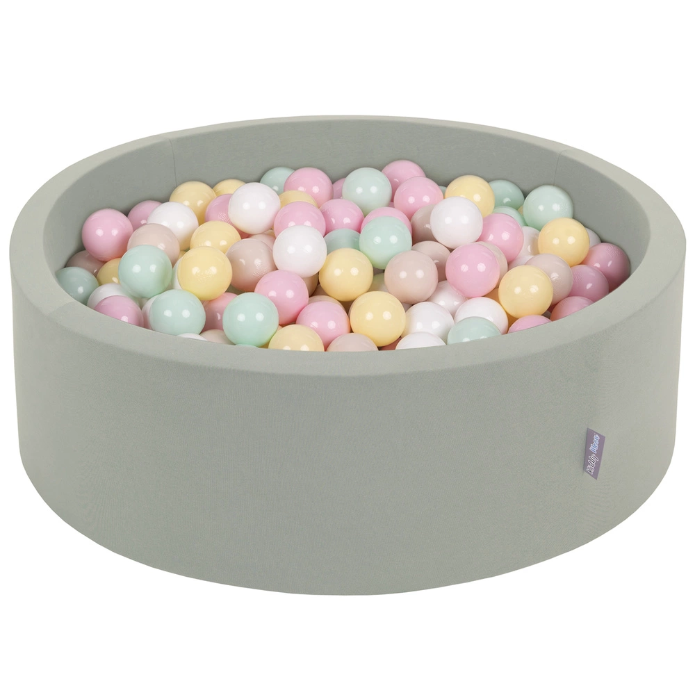 KiddyMoon Suchy basen okrągły z piłeczkami 7cm Zabawka basen piankowy, szałwiowy: pastelowy beż-pastelowy żółty-biały-mięta-pudrowy róż