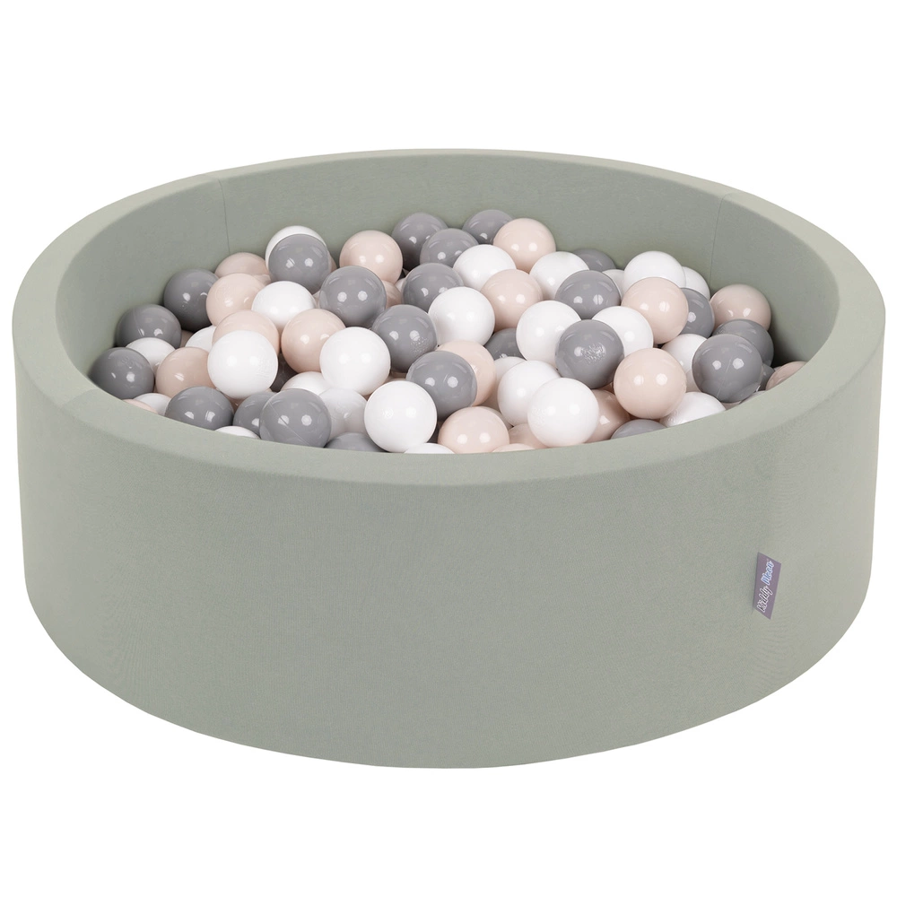 KiddyMoon Suchy basen okrągły z piłeczkami 7cm Zabawka basen piankowy, szałwiowy: pastelowy beż-szary-biały