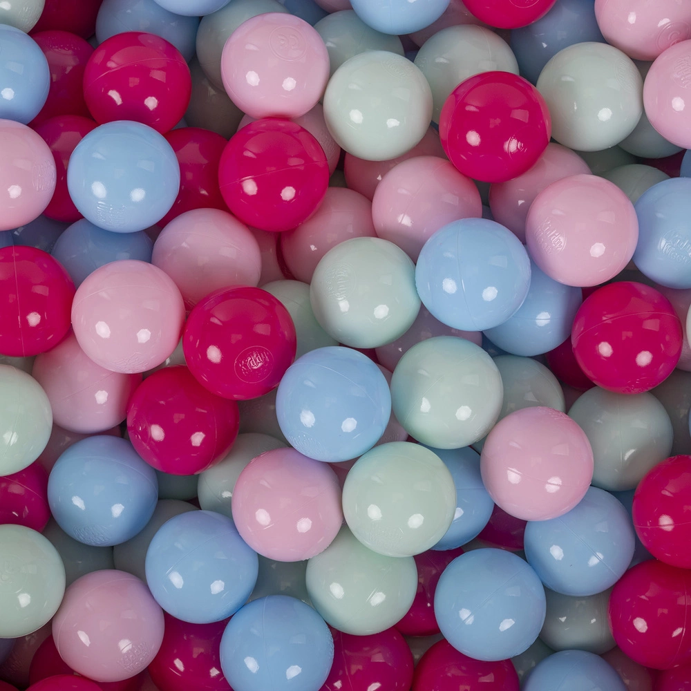KiddyMoon Suchy basen okrągły z piłeczkami 7cm Zabawka basen piankowy, wrzosowy: pudrowy róż-ciemny róż-babyblue-mięta