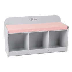 KiddyMoon Ławka z materacem BN-001 Mebel z półkami, szary/różowy