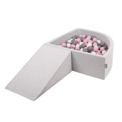 KiddyMoon Piankowy plac zabaw PPZP-TR30D-112 z piłeczkami Zabawka plac zabaw, jasnoszary: biały-szary-pudrowy róż