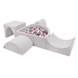 KiddyMoon Piankowy plac zabaw PPZP-TR30D-135 z piłeczkami Zabawka plac zabaw, jasnoszary: biały-szary-pudrowy róż