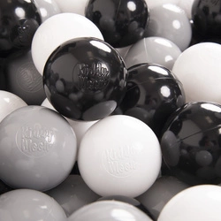 KiddyMoon Plastikowe piłeczki 7cm Zabawka zestaw kulek, biały-czarny-szary